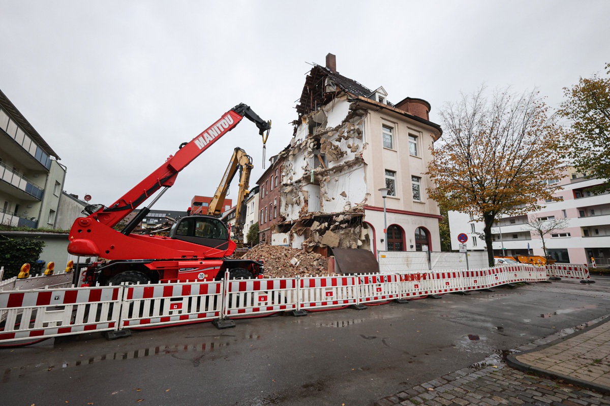 Sparkassen-Campus am Bröderichweg in Kinderhaus im August 2023. Bürogebäude Bode an der Meyerbeerstraße. beresa-4694 York-Quartier in Gremmendorf. Das katholische Studierendenwohnheim Tita-Cory-Campus an der Albert-Schweitzer-Straße. Januar 2024: Neubau der B51 am Knotenpunkt Warendorfer Straße/Mondstraße. Der Bogen Richtung Warendorf. Von rechts nach links verläuft die Dyckburgstaße. Januar 2024: Neubau der B51 am Knotenpunkt Warendorfer Straße/Mondstraße. Blick von oben auf Brücke über die Dyckburgstraße. Hammer Straße 134 während des Abrisses Ende Oktober 2023. Hammer Straße 134 während des Abrisses Ende Oktober 2023. Das Oxford-Quartier in Gievenbeck.