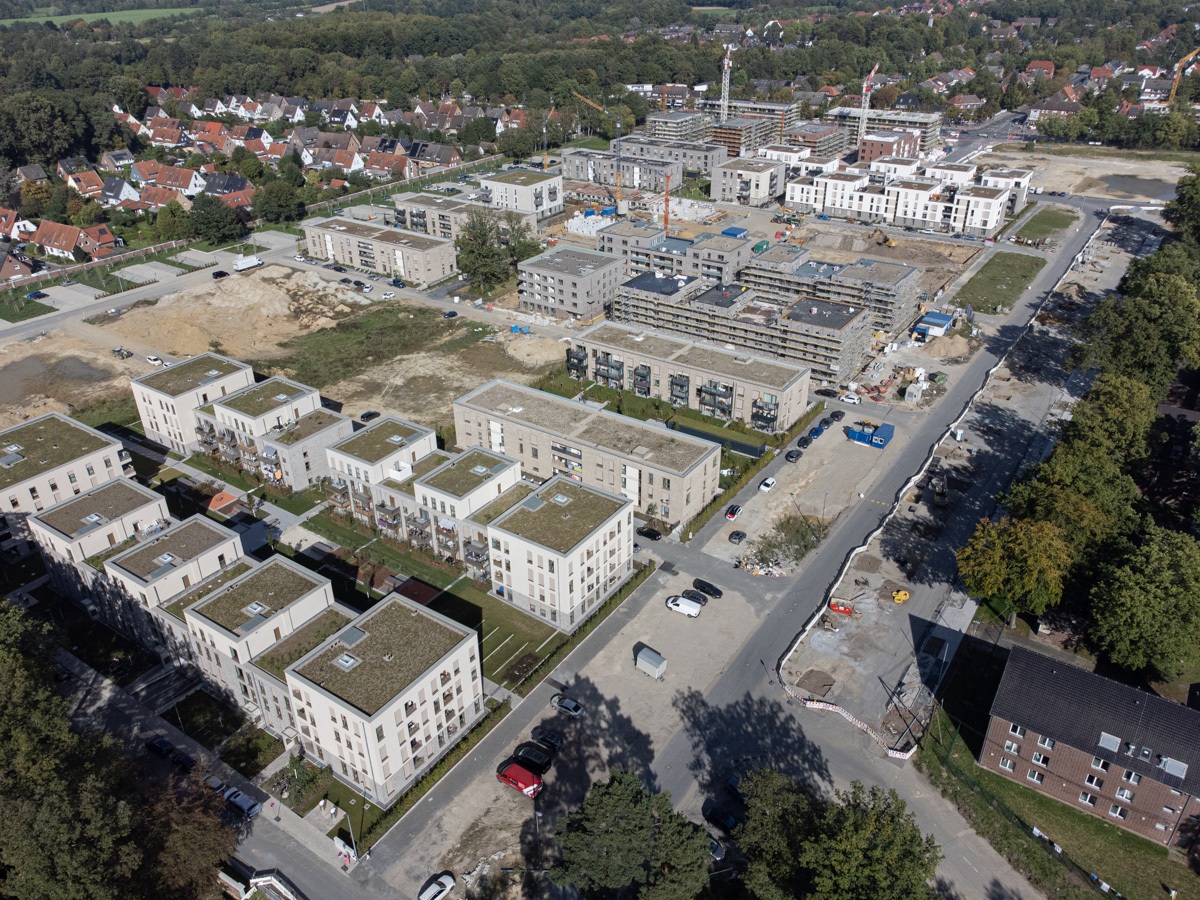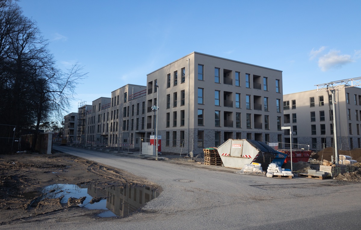 In Gremmendorf entsteht das York-Quartier, in Gievenbeck wächst das künftige Oxford-Quartier. Wie sieht es im August 2023 dort aus? Weitgehend fertig ist der Teilbereich D3 …
